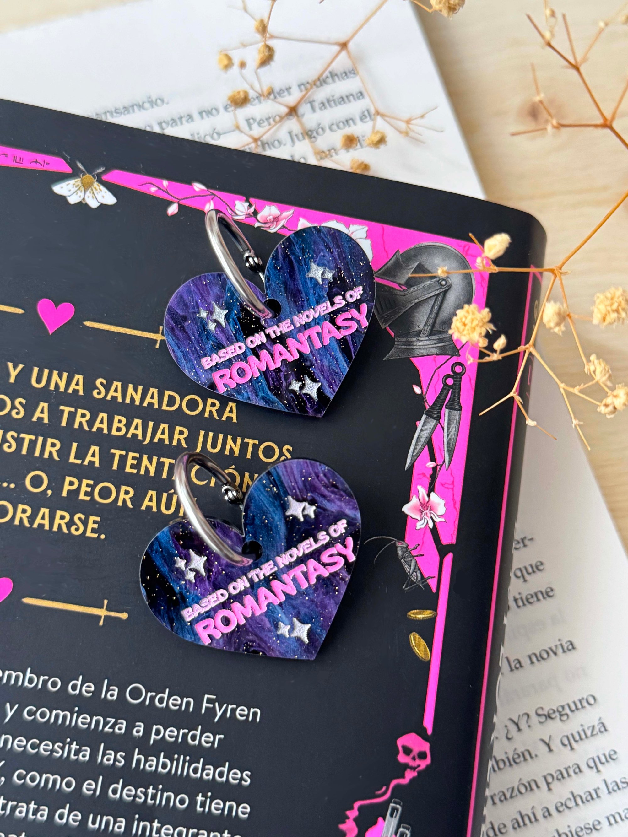★ Pieza de Metacrilato marmolado galaxia, inspirada en los Romantasys que más nos enamoraron esta temporada, además están pintados a mano con detalles rosas y plateados, tamaño de 3,5 cm.